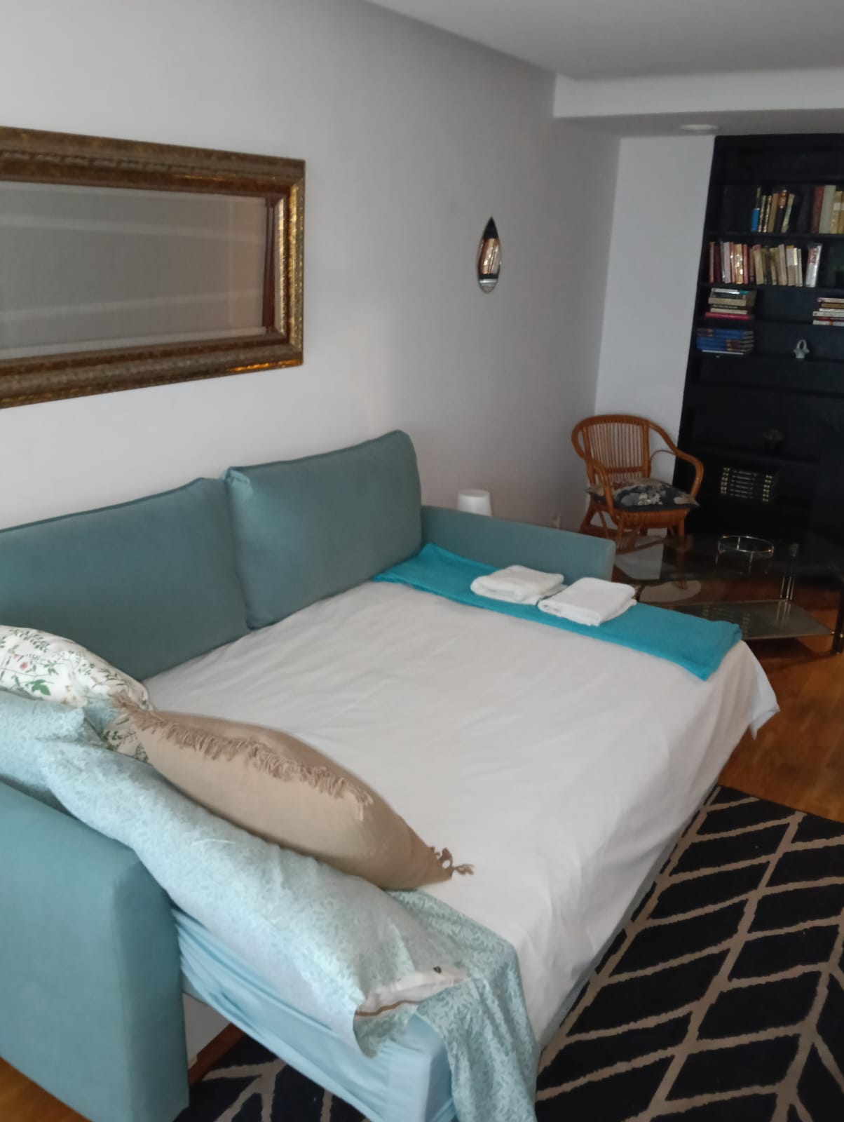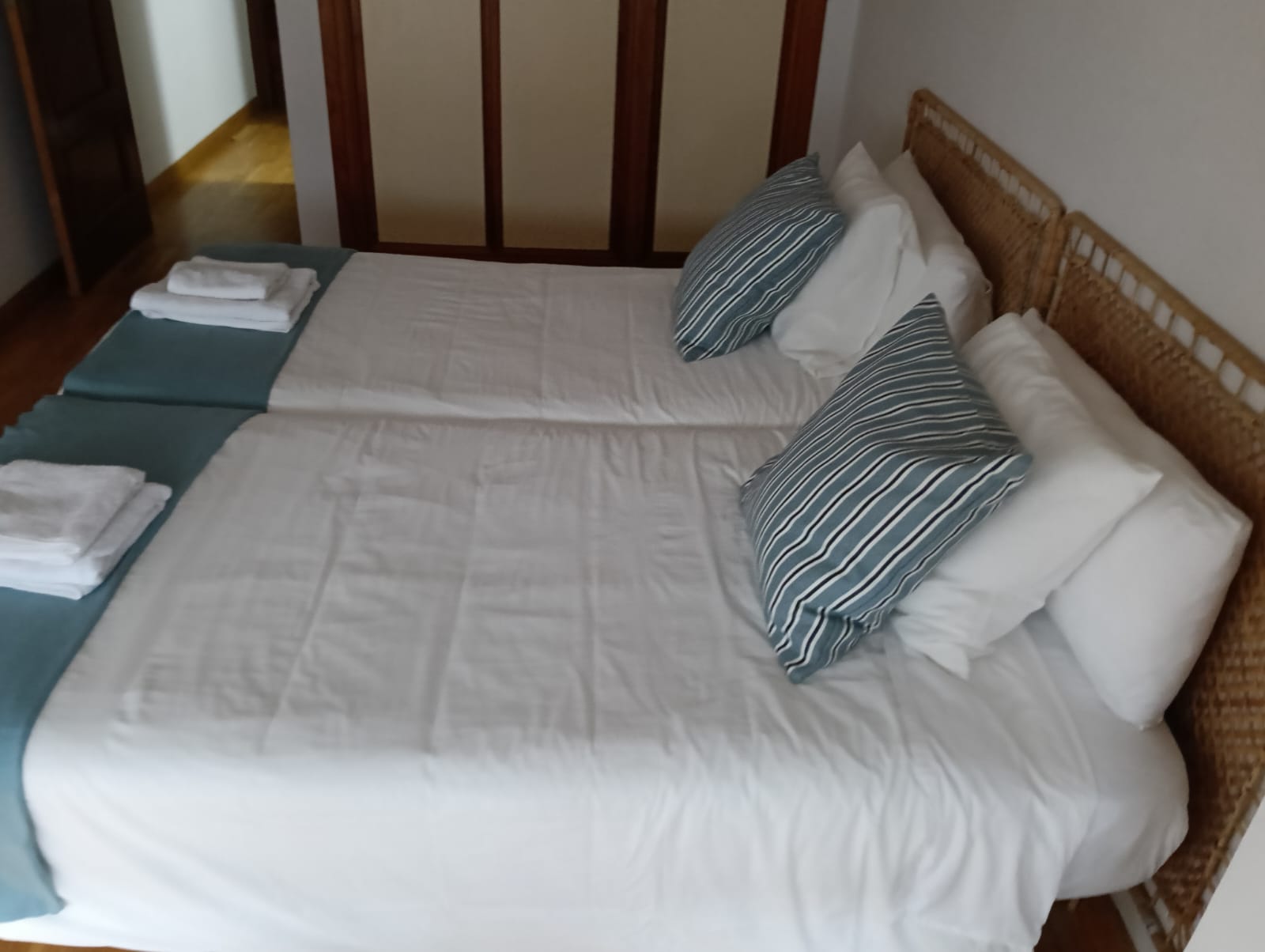 El apartamento tiene 1 habitacion de una cama de 90 y otra habitacion de dos camas de 90 que a peticion del cliente se puede convertir en una cama de 1,80 ,tambien tiene un salon con un sofa que puede ser una cama de 1,40, pudiendo ser para 3, 4 o 5 personas